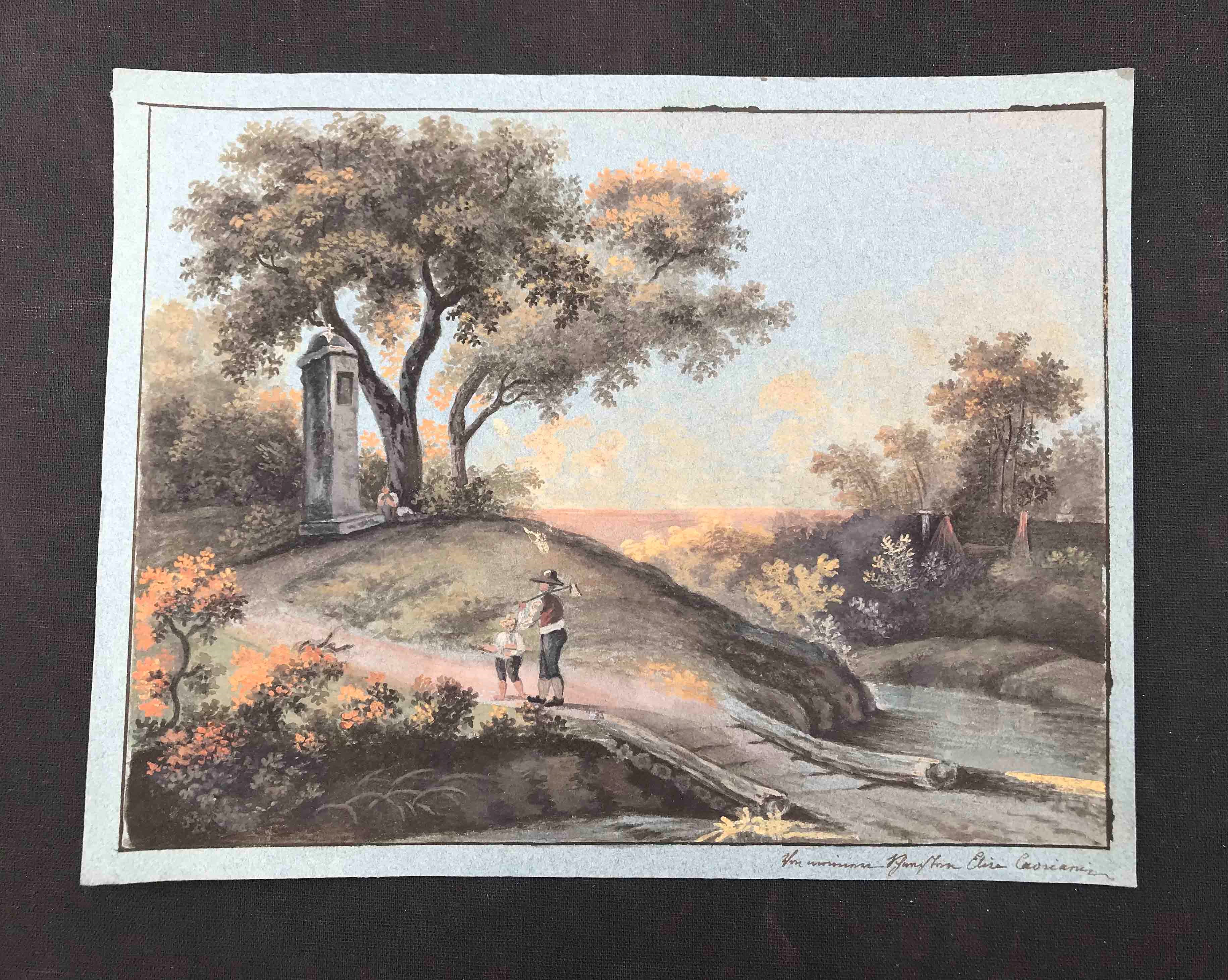Firma indecifrata XIX secolo Paesaggio con viandanti