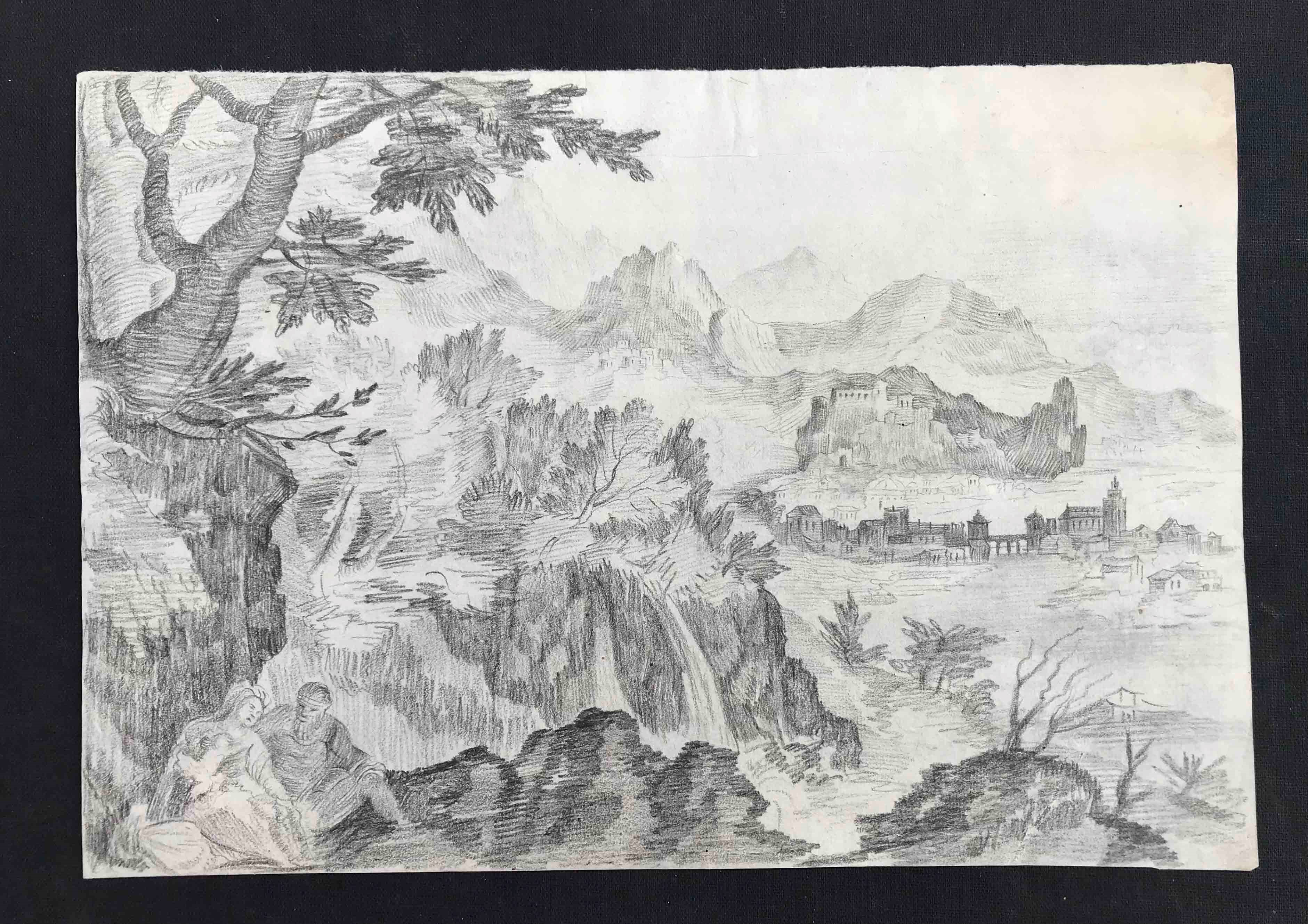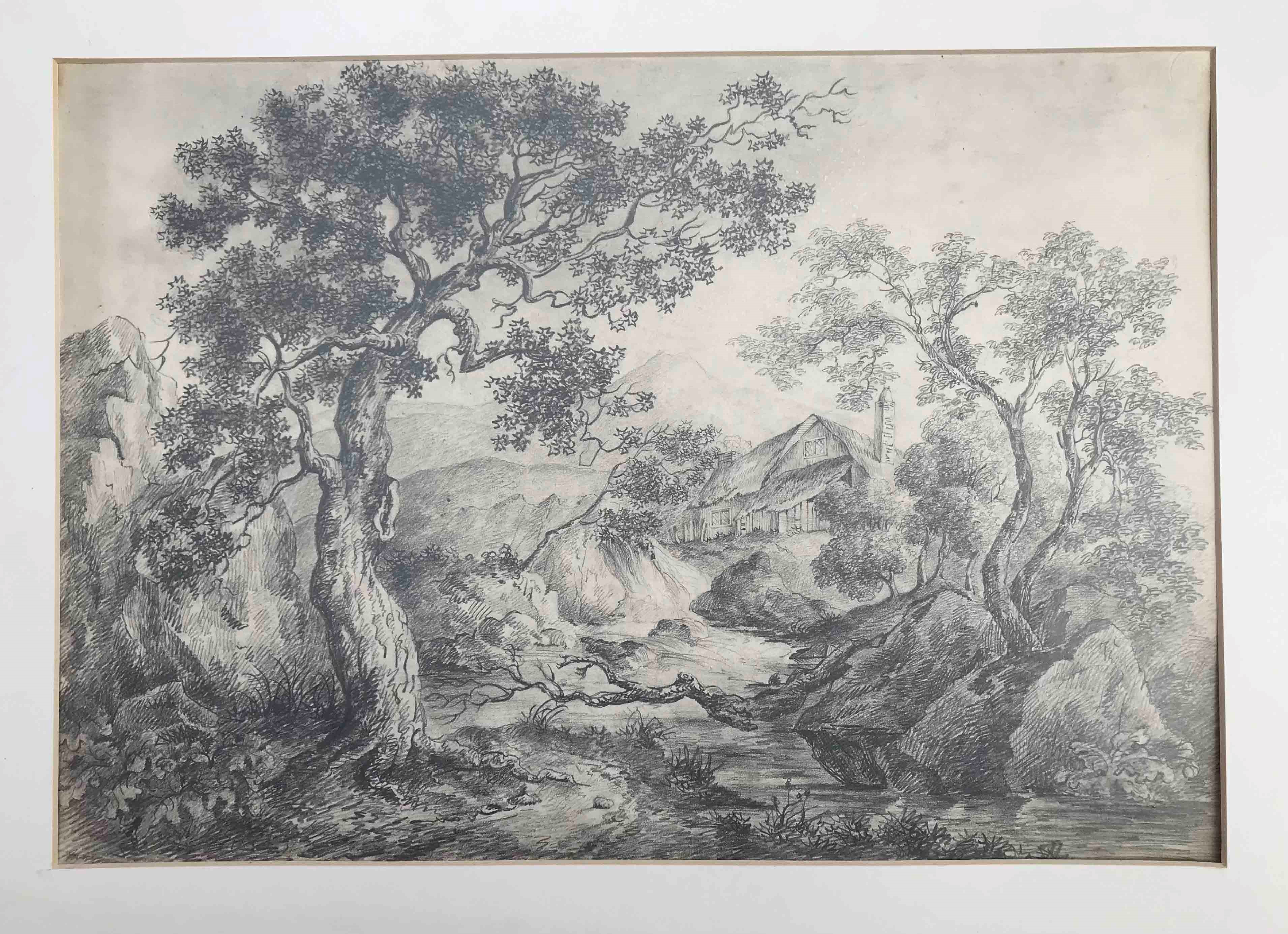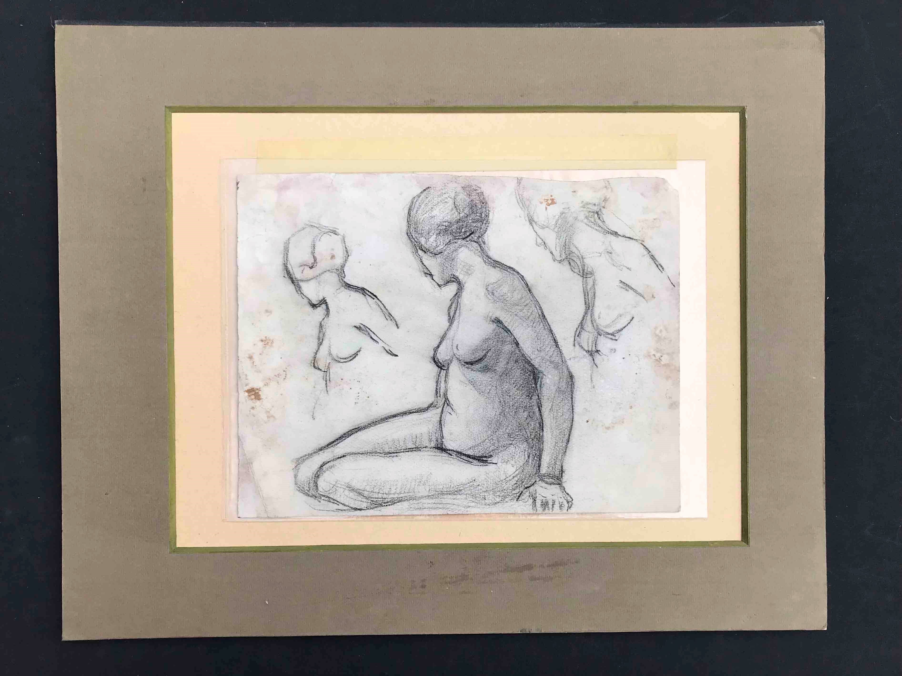 Lotto di tre disegni Nudi di donna, Paesaggio boschivo, Paesaggio con fuga in Eg [..]