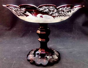Vaso in vetro opalino dipinto, dorato e inciso. XIX secolo