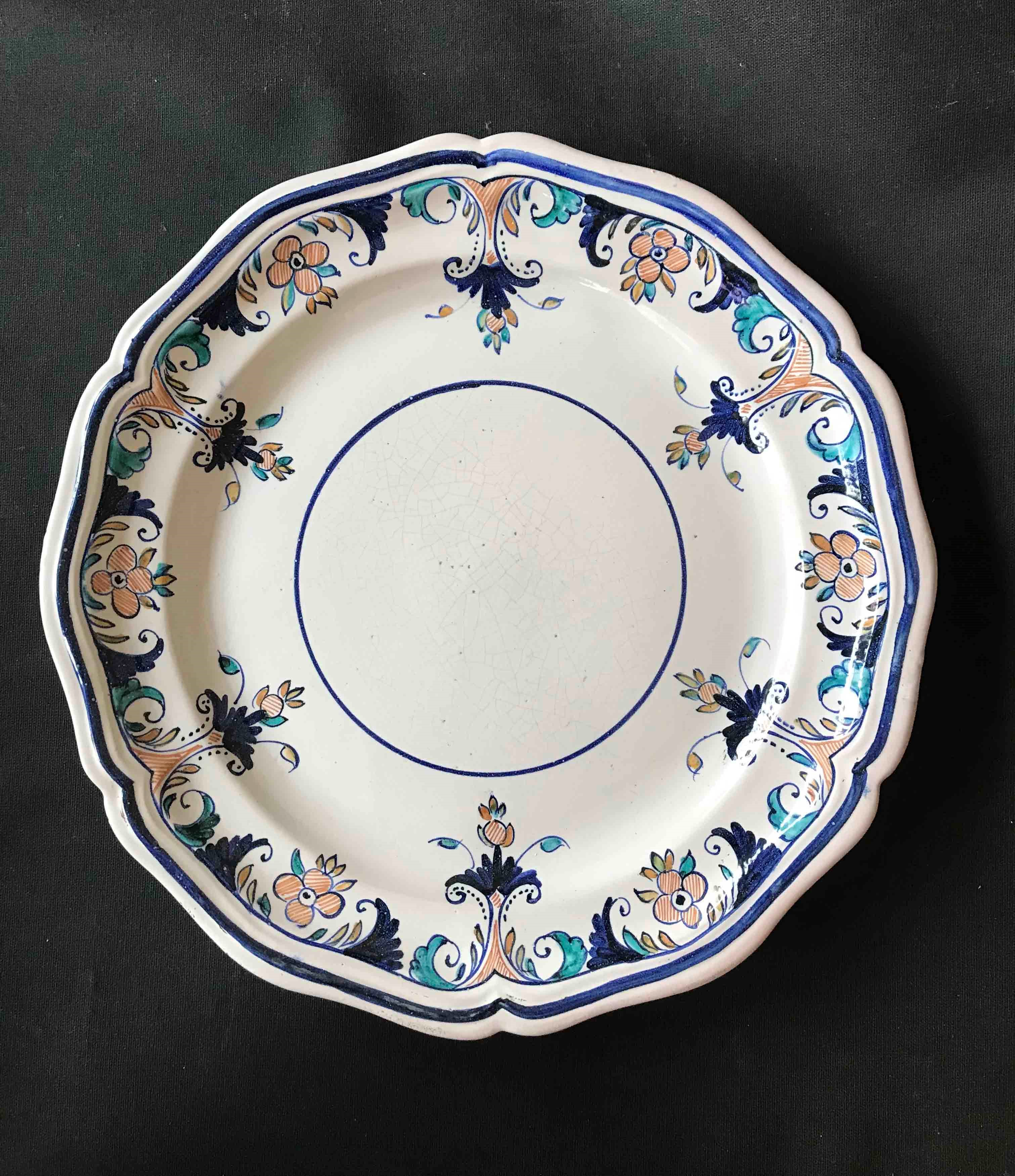 Piatto dipinto a motivi floreali. Francia (?)