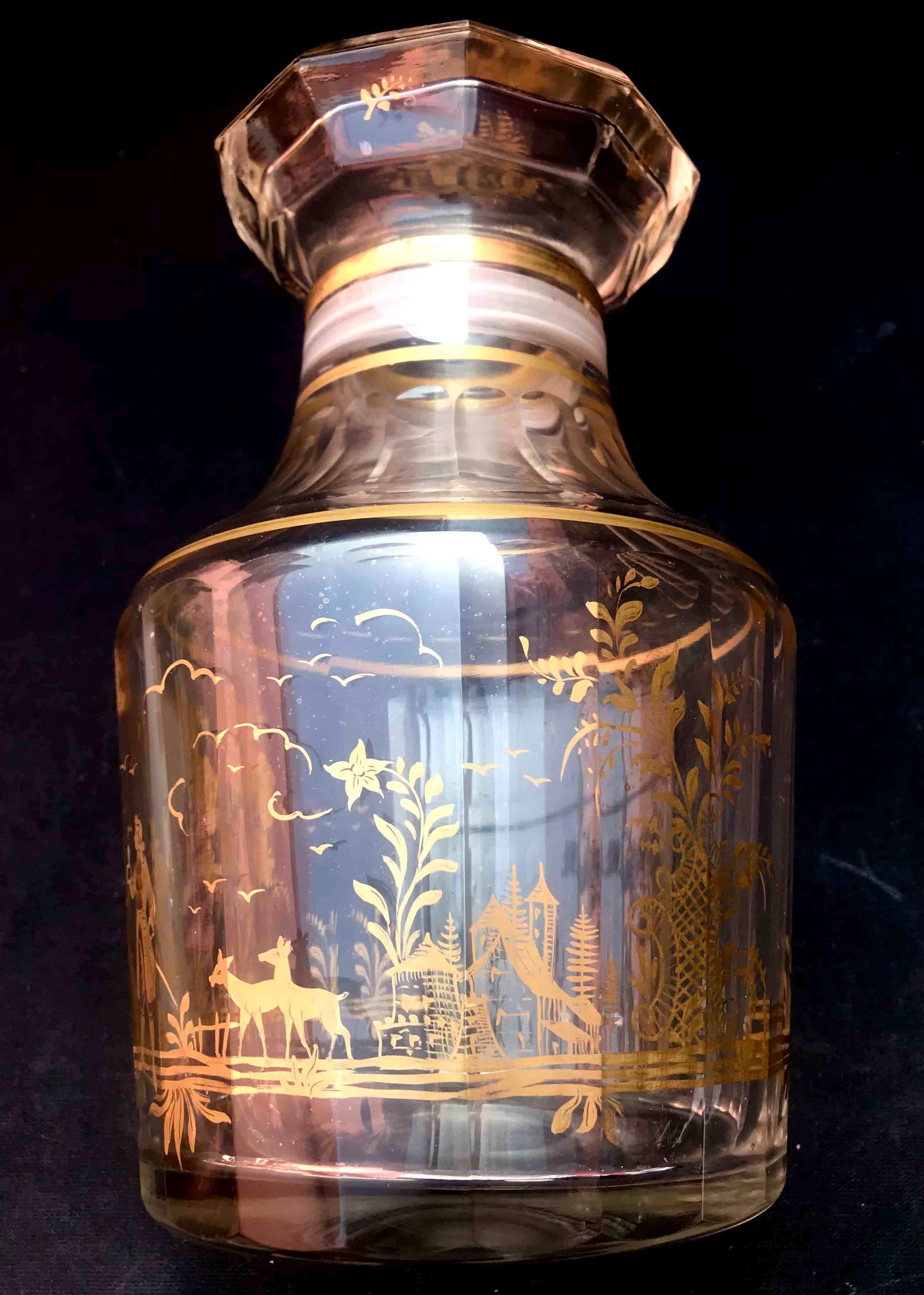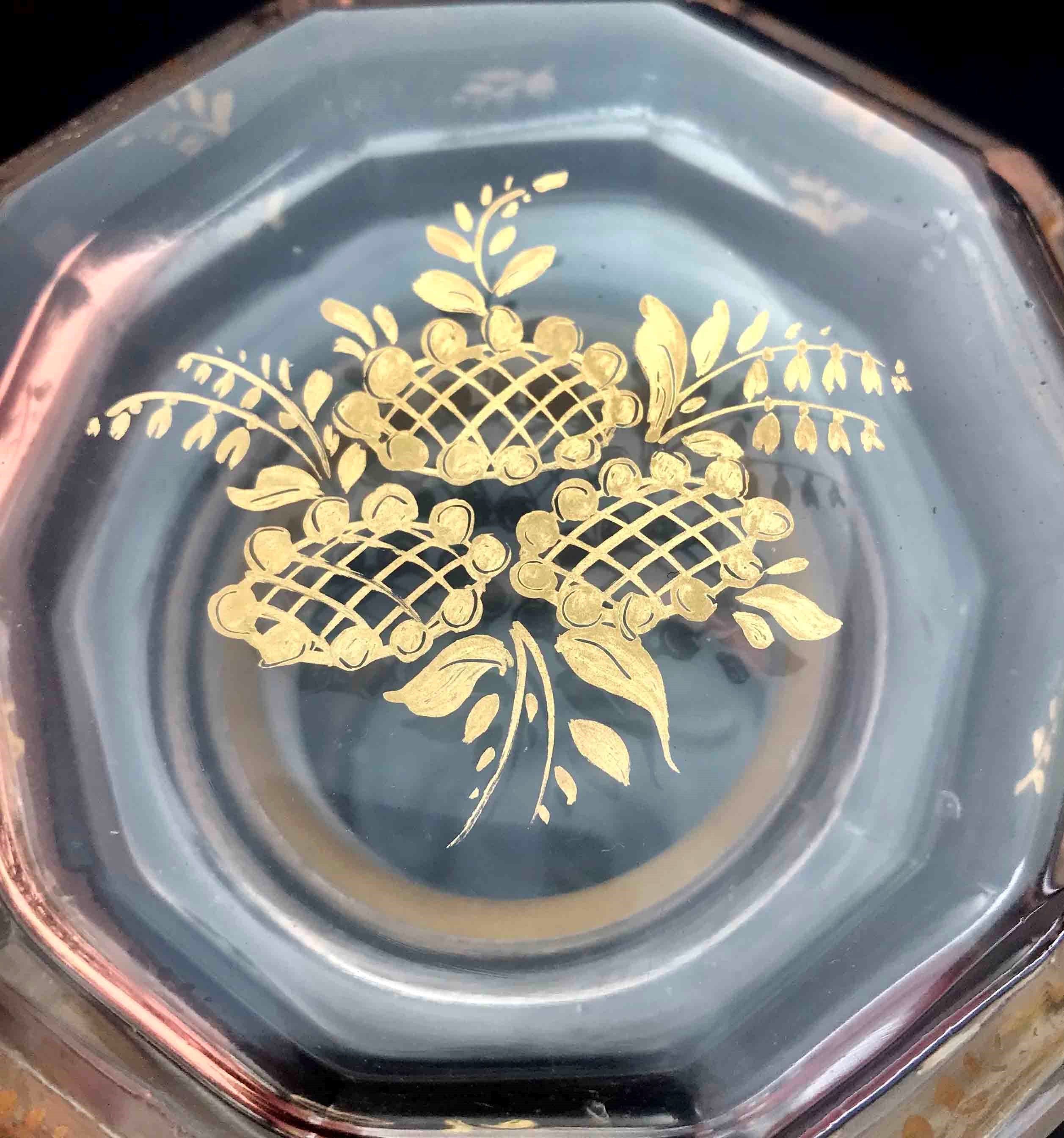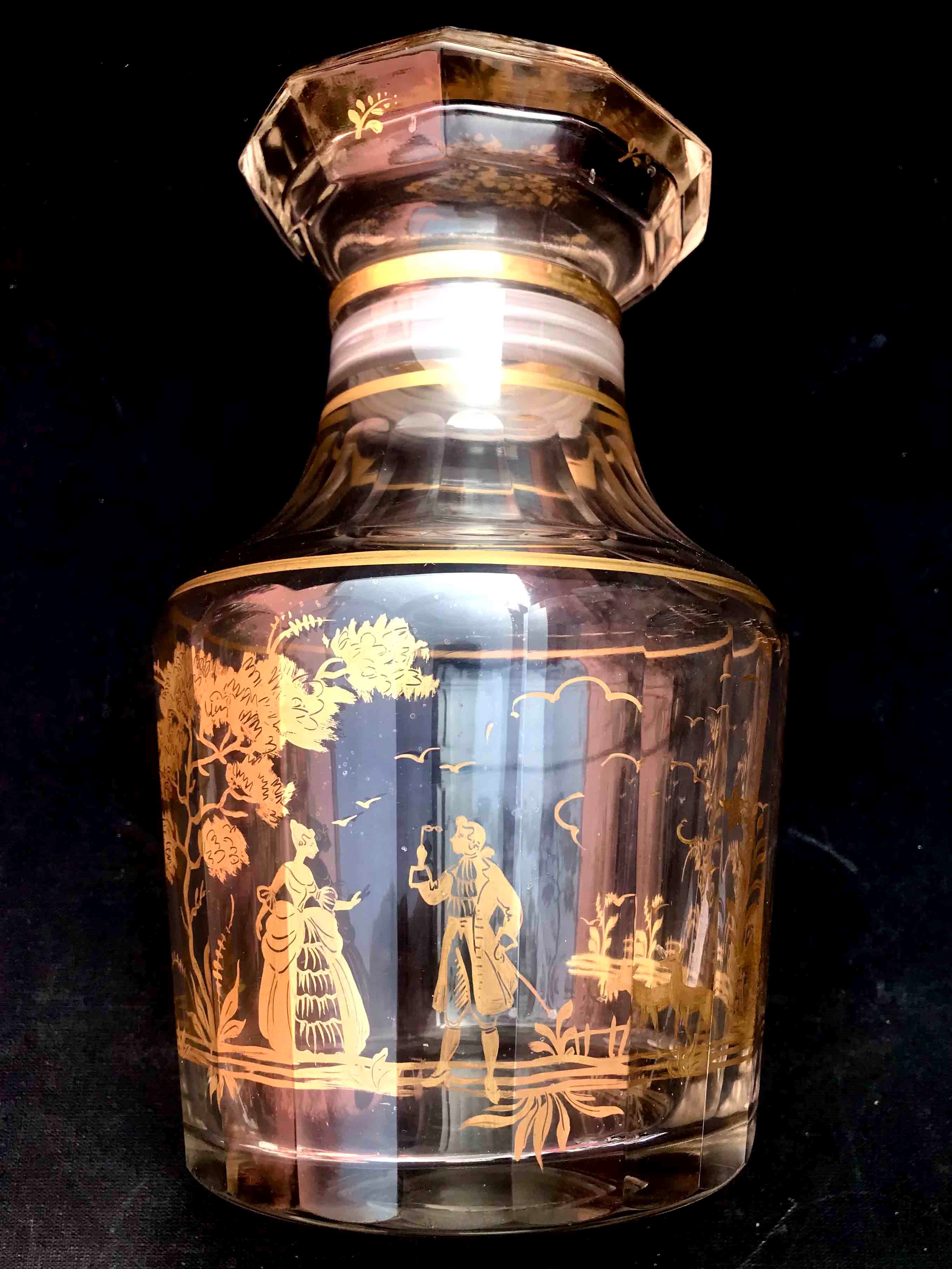 Vaso in vetro e cristallo molato dipinto a mano con scena galante e decori in oro. [..]