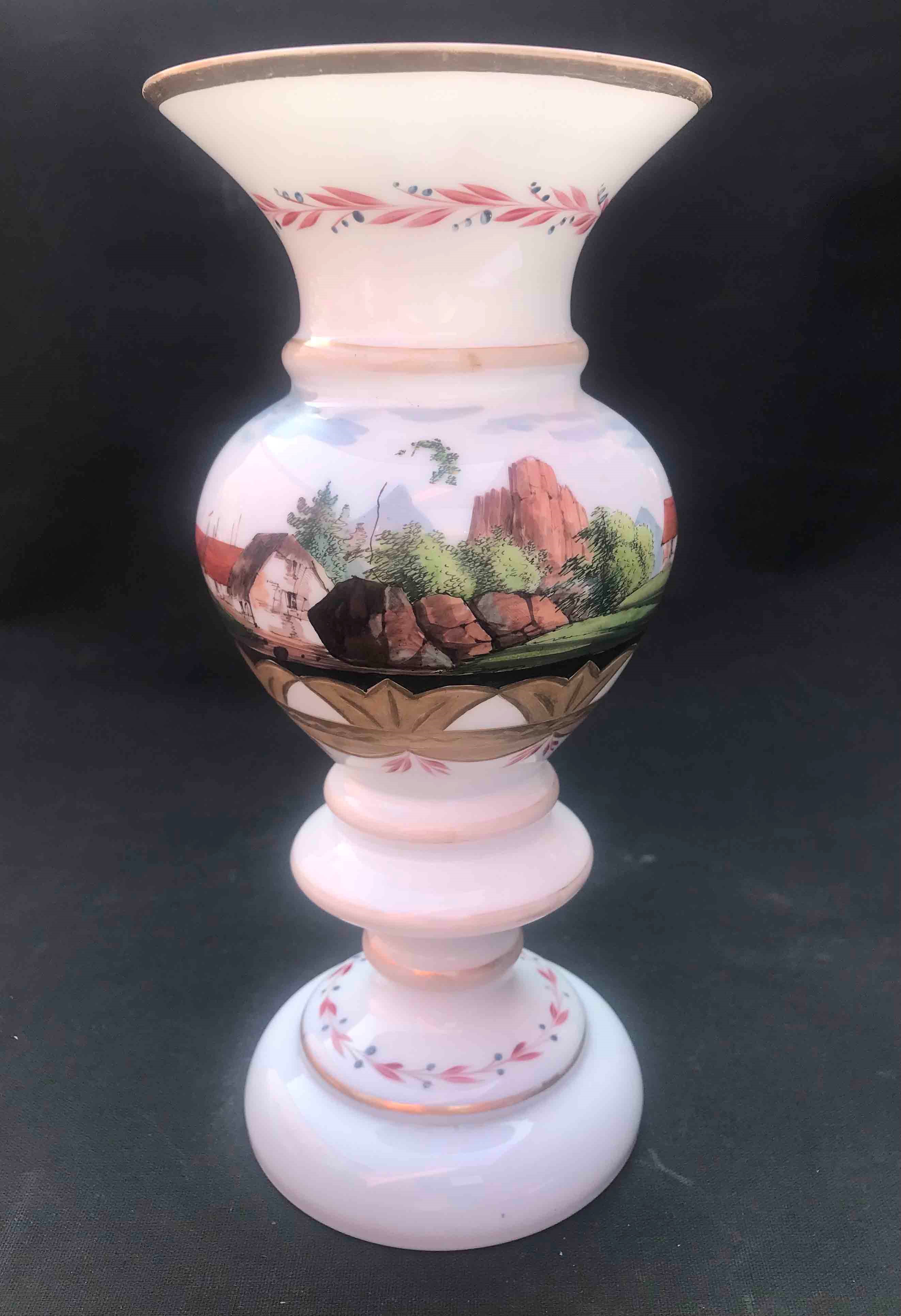 Vaso in vetro opalino dipinto, dorato e inciso. XIX secolo