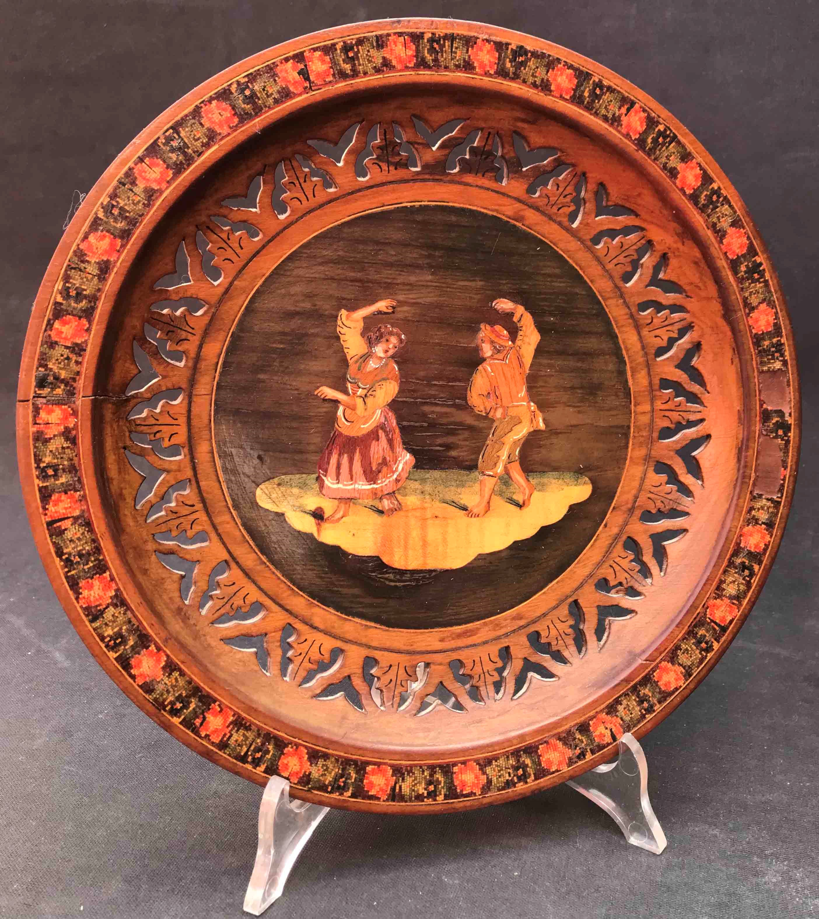 Vassoio in ulivo intagliato intarsiato e dipinto. Arte sorrentina, prima metà XX [..]