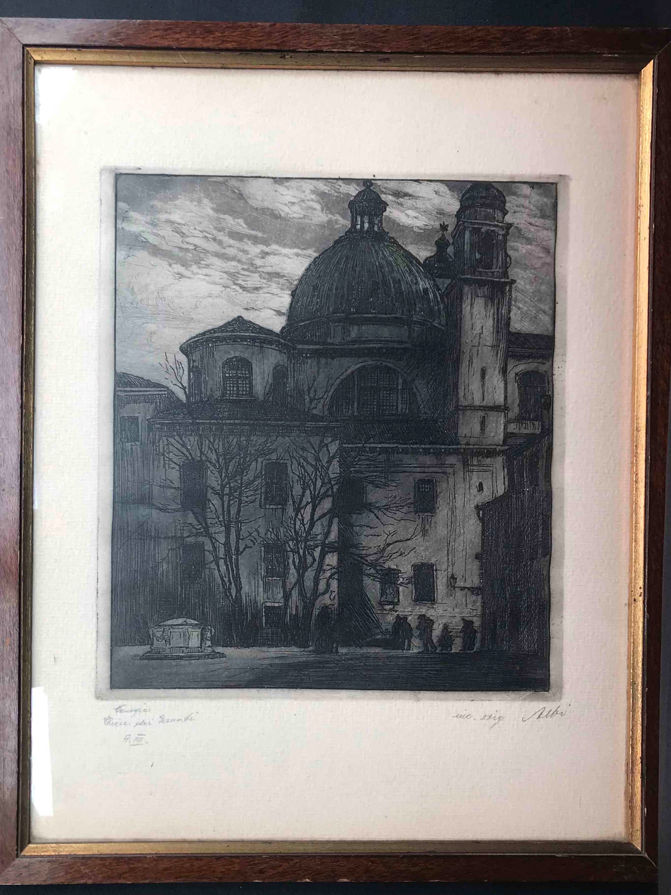 Venezia - Firma indecifrata. 3 acqueforti in cornice. XII E.F