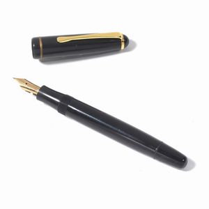 MONTBLANC PENNA STILOGRAFICA fusto in resina nera, cappuccio scanalato in metallo argentato sormontato dall'emblema [..]