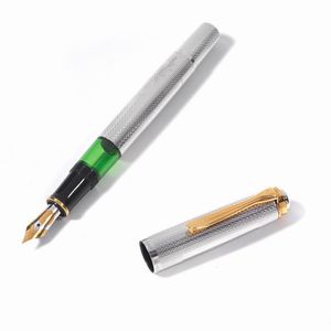 PELIKAN M750 JUBILEE (1838 - 1988) N. 14153 PENNA STILOGRAFICA fusto guillochè in metallo argentato, dettagli [..]