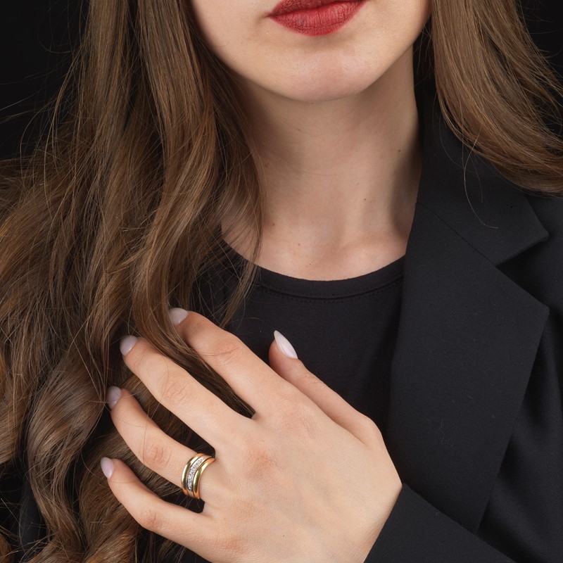 WAVY BAND DIAMOND RING IN 18KT THREE TONE GOLD