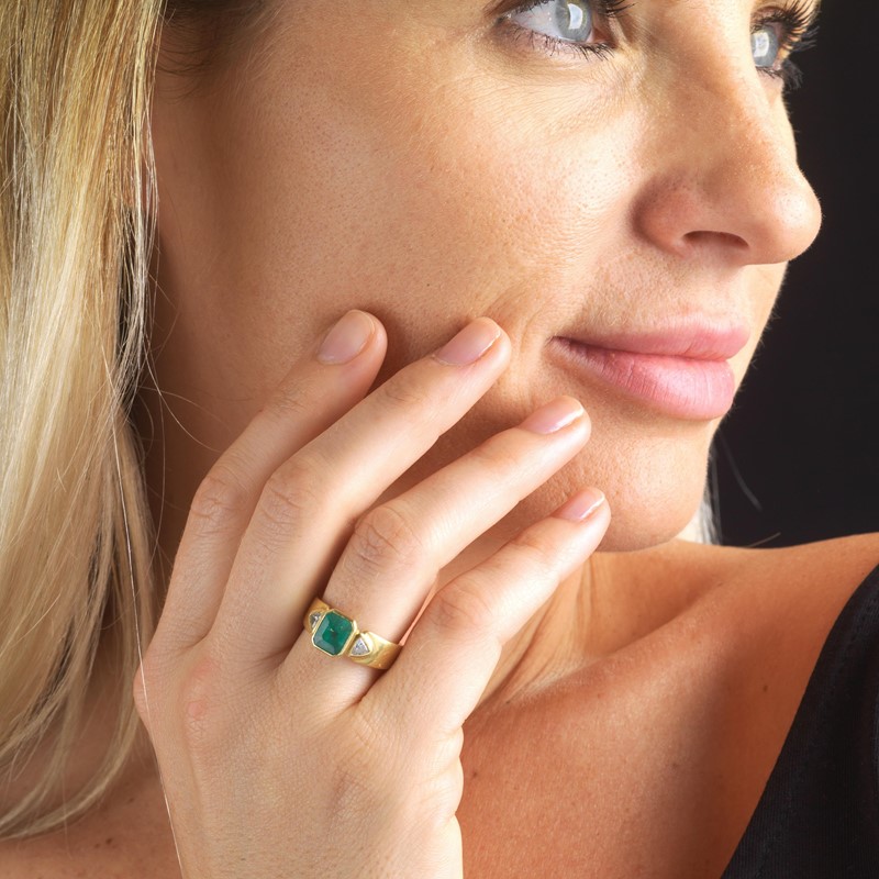 EMERALD AND DIAMOND RING IN 18KT YELLOW GOLD