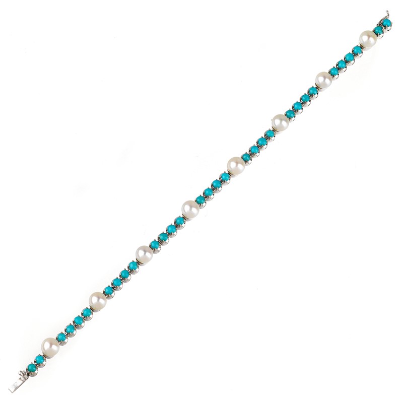 TURQUOISE AND PEARL TENNIS BRACELET IN 18KT WHITE GOLD