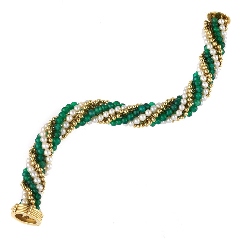 TORCHON PEARL AND SEMIPRECIOUS STONE BRACELET IN 18KT YELLOW GOLD
