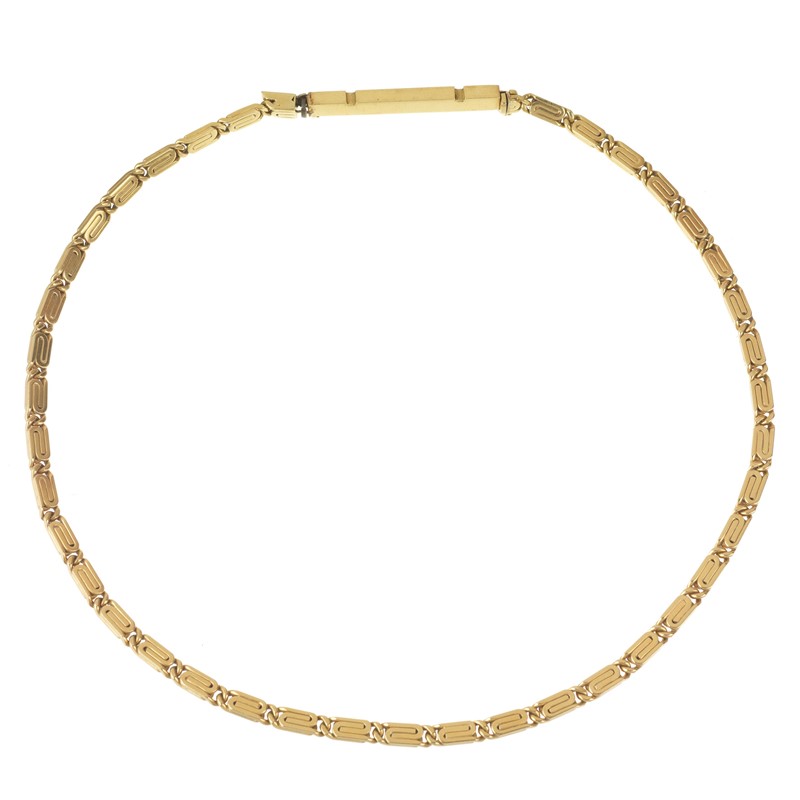 in oro giallo 18kt, composta da una serie di maglie concatenate con parte della fermatura smontabile, punzoni 750 e del fabbricante, lungh. cm 44, gr. 48