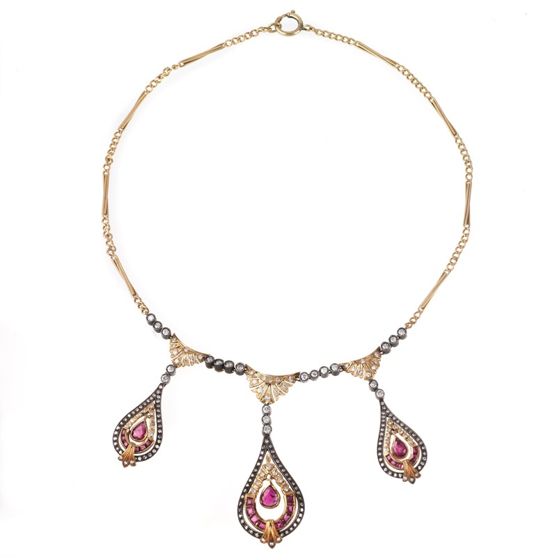 RUBY AND DIAMOND NECKLACE IN SILVER AND GOLD