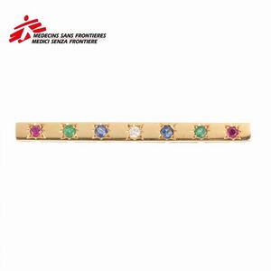 SPILLA A BARRETTA CON PIETRE DI COLORE E DIAMANTI in oro giallo 18kt, impreziosita da zaffiri, rubini, smeraldi [..]