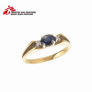 ANELLO CON ZAFFIRO E DIAMANTI in oro giallo e bianco 18kt, al centro uno zaffiro taglio ovale di ct 0.30 circa [..]