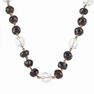 LUNGA COLLANA CON GRANATI E CRISTALLO ad un filo di granati sfaccettati (difetti), alternati a sfere sfaccettate [..]