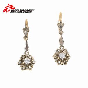 PAIO DI ORECCHINI PENDENTI CON PIETRE SINTETICHE in oro a basso titolo, dim. cm 1x3,5, chiusura a monachella, [..]