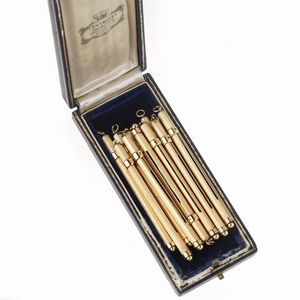 DODICI SGASA CHAMPAGNE laminati oro, dim. cm 750, gr. 47 complessivi TWELVE GOLDPLATED SWIZZLE STICK