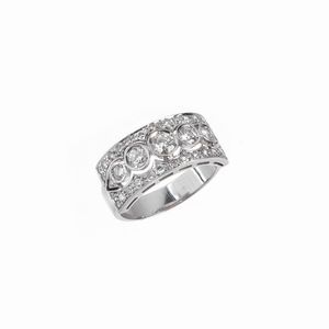 ANELLO A FASCIA CON DIAMANTI in oro bianco 18kt, impreziosito da pavé di diamanti taglio brillante per [..]