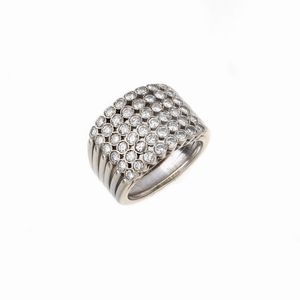 ANELLO A FASCIA CON DIAMANTI in oro bianco 18kt, impreziosito diamanti taglio brillante per ct 1.60 circa, punzoni [..]