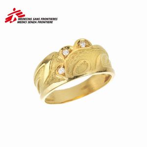 ANELLO A FASCIA CON DIAMANTI in oro giallo inciso 18kt, impreziosito da tre diamanti taglio brillante, punzone [..]