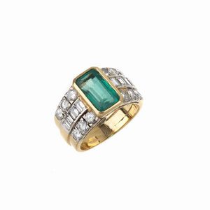 ANELLO A FASCIA CON SMERALDO E DIAMANTI in oro giallo e bianco 18kt, al centro uno smeraldo taglio ottagonale [..]