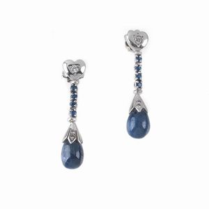 PAIO DI ORECCHINI PENDENTI CON ZAFFIRI E DIAMANTI