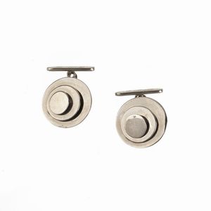 PAIO DI GEMELLI A DISCO in oro bianco 18kt. realizzati a dischi sovrapposti, punzoni 750 e del fabbricante, dim. [..]