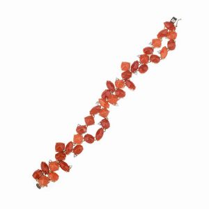 BRACCIALE CON CORALLO E DIAMANTI in oro giallo e bianco 18kt, a maglia morbida e impreziosito da coralli sfaccettati [..]