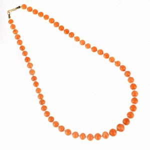 COLLANA IN CORALLO E CRISTALLO DI ROCCA composta da una serie di sfere in corallo leggermente digradanti di mm [..]