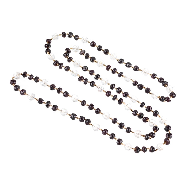 LUNGA COLLANA CON GRANATI E CRISTALLO