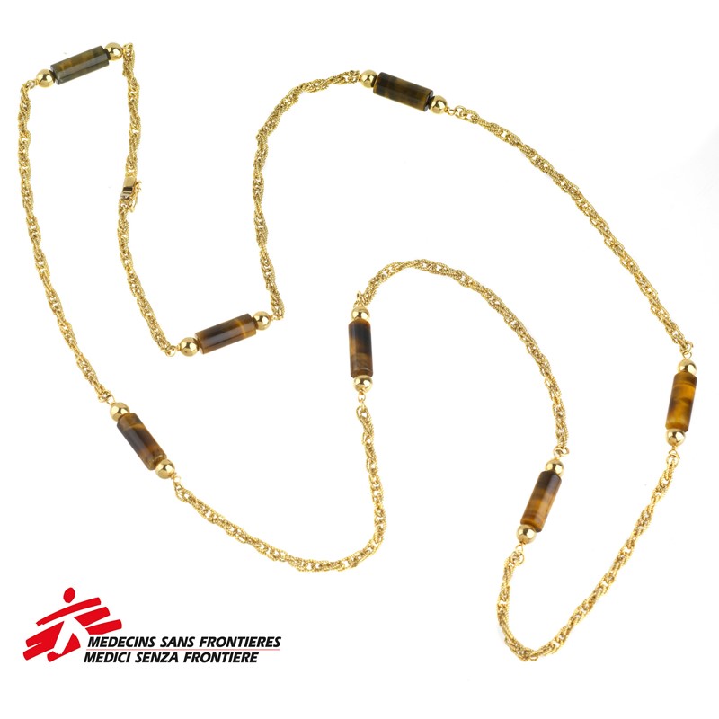 LONG TIGER EYE NECKLACE IN 18KT YELLOW GOLD
