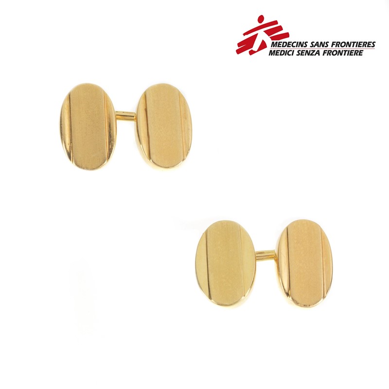 PAIO DI GEMELLI in oro giallo 18kt, punzoni 750 e del fabbricante, dim. cm 1,5x2,5, gr. 8 complessivi