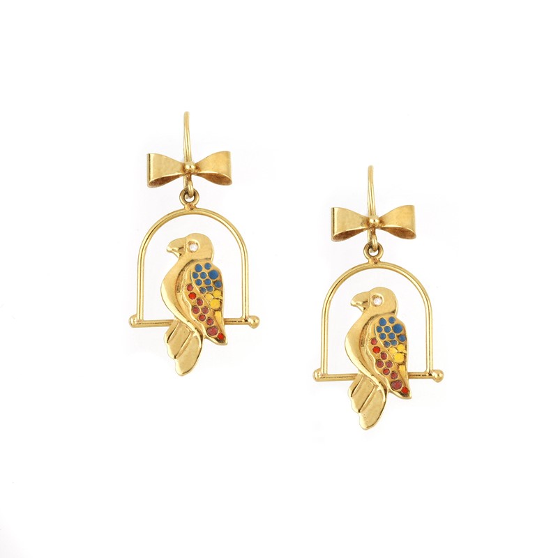 BIRDS ON PERCHES EARRINGS IN 18KT YELLOW GOLD