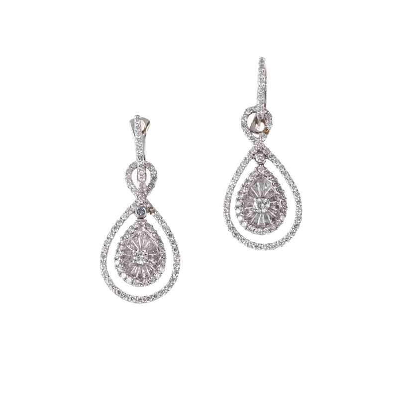 DIAMOND DROP EARRINGS IN 18KT WHITE GOLD