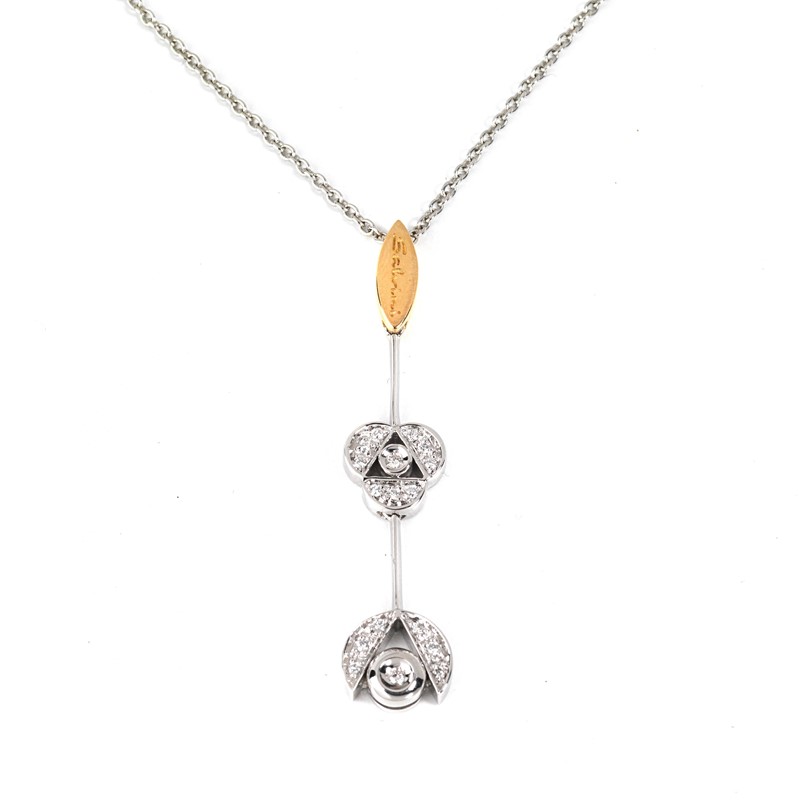 SALVINI COLLANA MOTIVO FLOREALE in oro bianco e giallo 18kt, composta da catena e pendente impreziosito da diamanti taglio brillante per ct 0.20 circa, firmata "Salvini", punzoni 750 e del fabbricante, lungh. pendente cm 1,4, lungh. collana cm 52, gr. 7