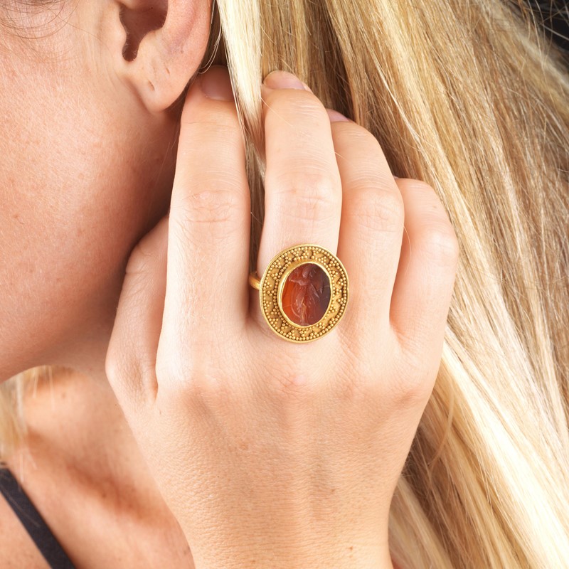 ARCHAEOLOGICAL STYLE HARD STONE RING IN 18KT YELLOW GOLD