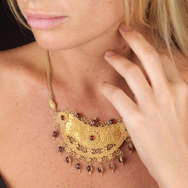 ARCHAEOLOGICAL STYLE NECKLACE WITH A BREASTPLATE IN 18KT YELLOW GOLD