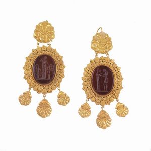PAIO DI ORECCHINI PENDENTI STILE ACHEOLOGICO CON PIETRA DURA in oro giallo 18kt, composti da elementi pendenti [..]