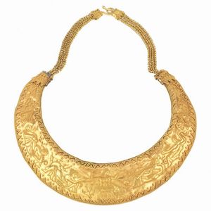COLLANA RIGIDA STILE ARCHEOLOGICO in oro giallo 18kt, composta da catena a maglia tessita e grande elemento a [..]