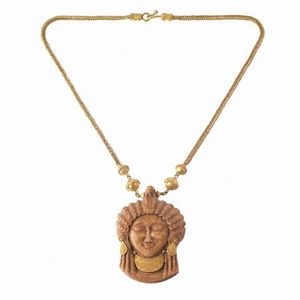 COLLANA STILE ARCHEOLOGICO CON PENDENTE in oro giallo 18kt, composta da catena e pendente in legno inciso raffigurante [..]