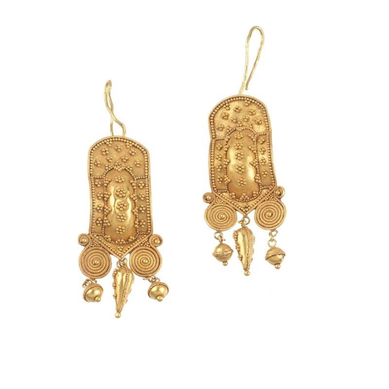 ARCHAEOLOGICAL STYLE DROP EARRINGS IN 18KT YELLOW GOLD