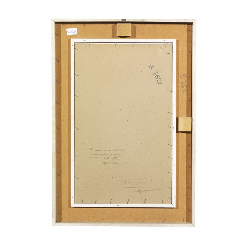 PIPPO ORIANI (Torino 1909 - Roma 1972) Dinamismo di ballerina 1930 encaustio, graffito su cartone gessato cm 50x30 firmato in basso a destra al retro firmato, titolato e dedicato al retro datato 1930 al retro sul supporto doppio numero B 752