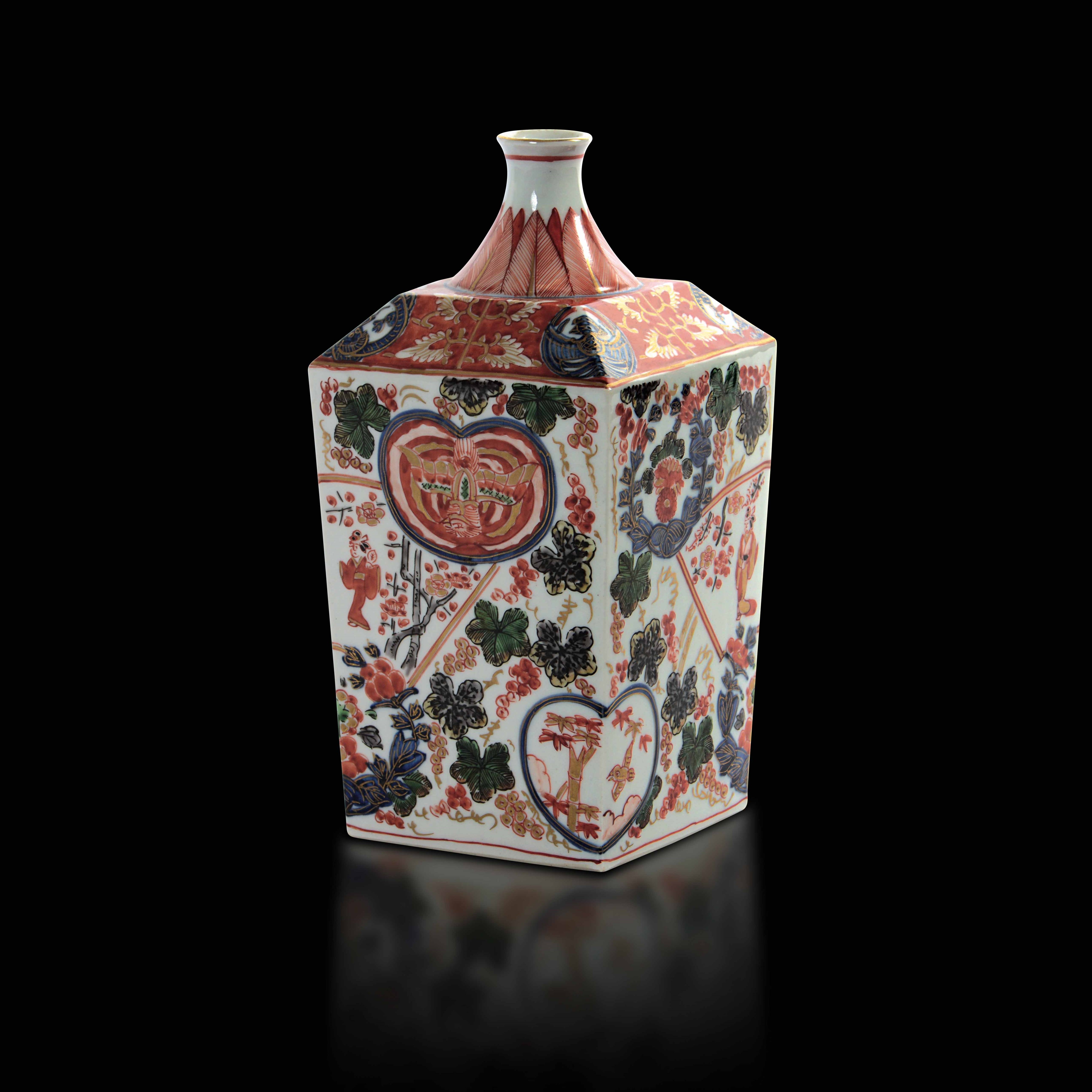 Bottiglia a pianta quadrata in porcellana Arita con soggetti naturalistici entro [..]