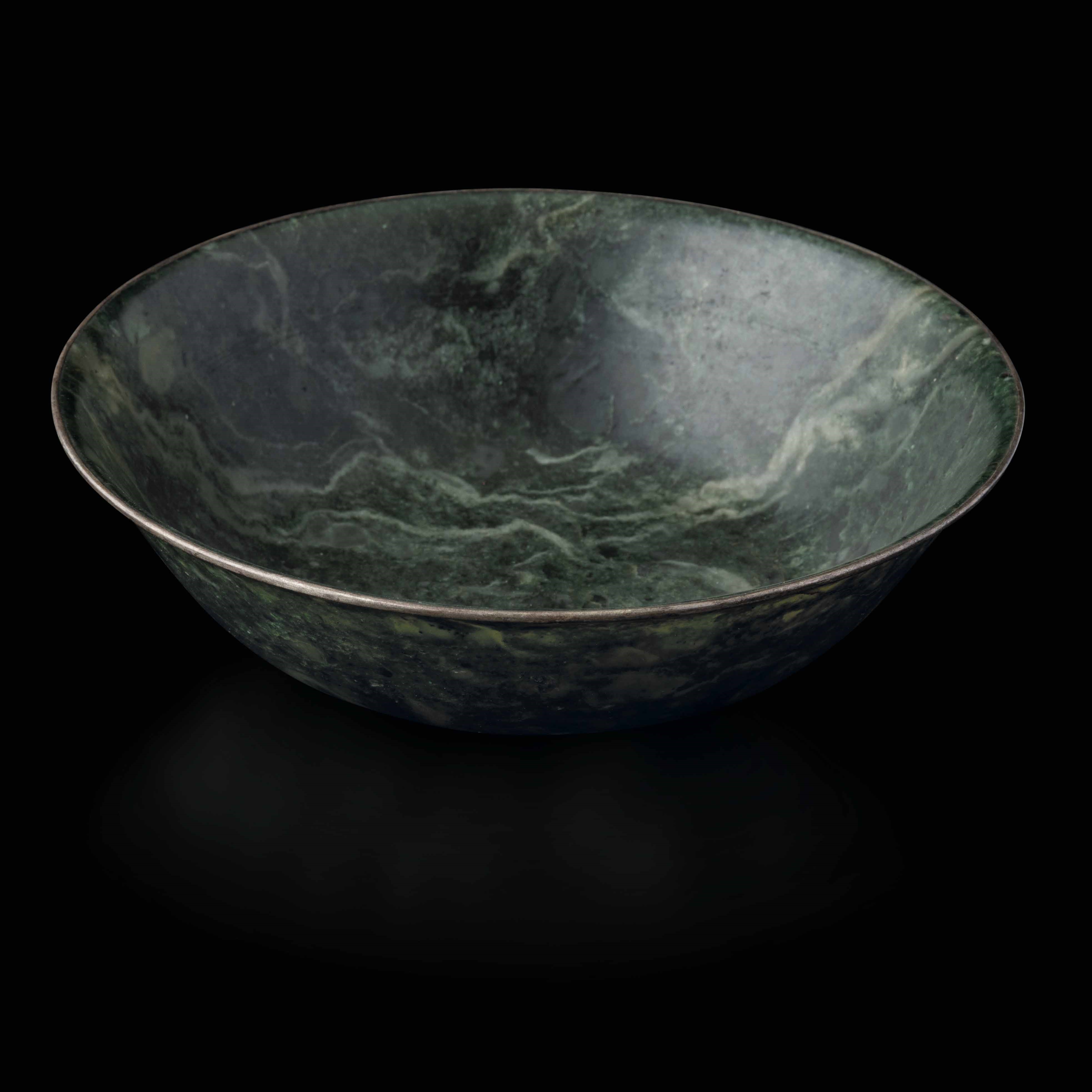 Ciotola scolpita in giada verde, Cina, Dinastia Qing, XIX secolo