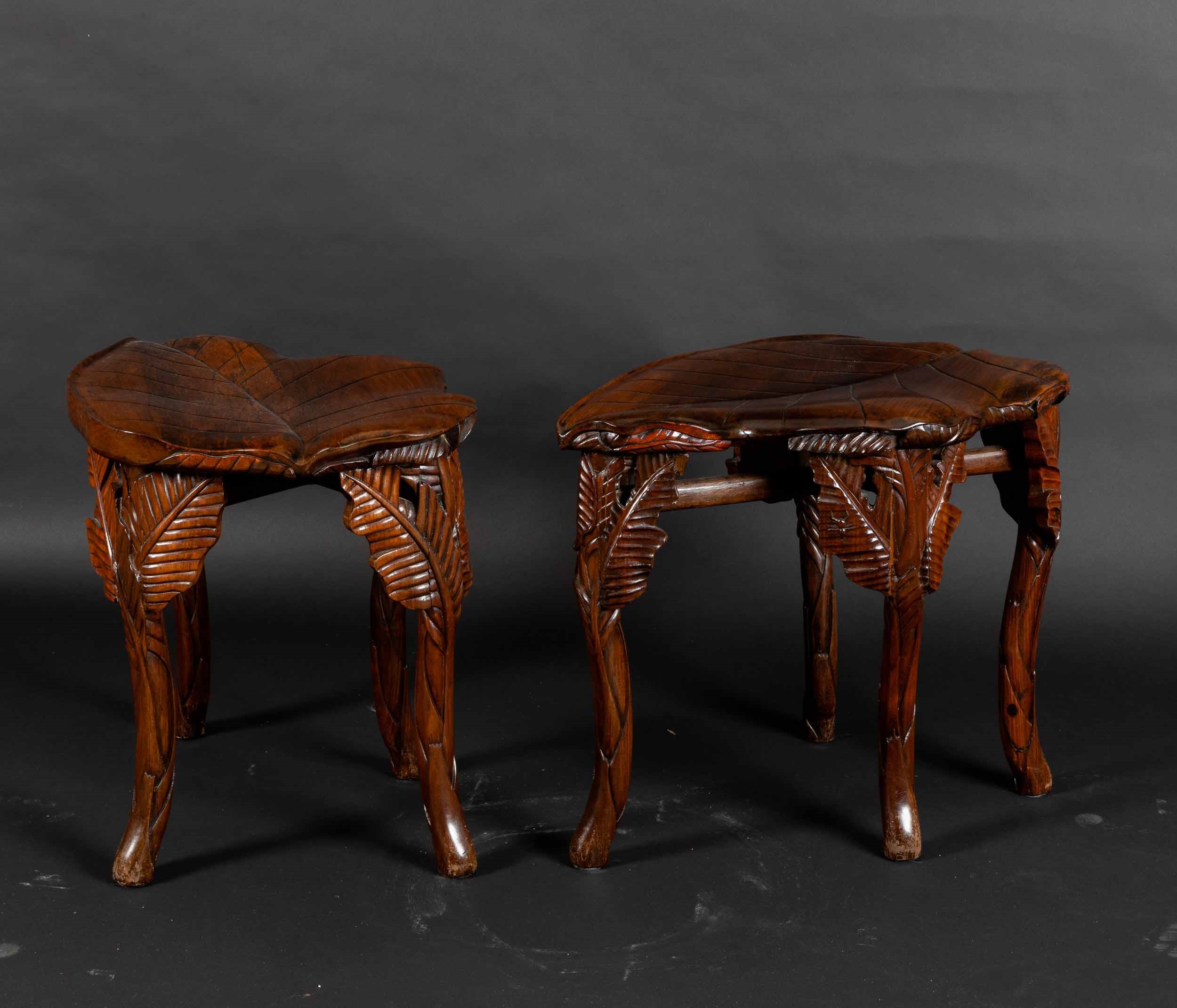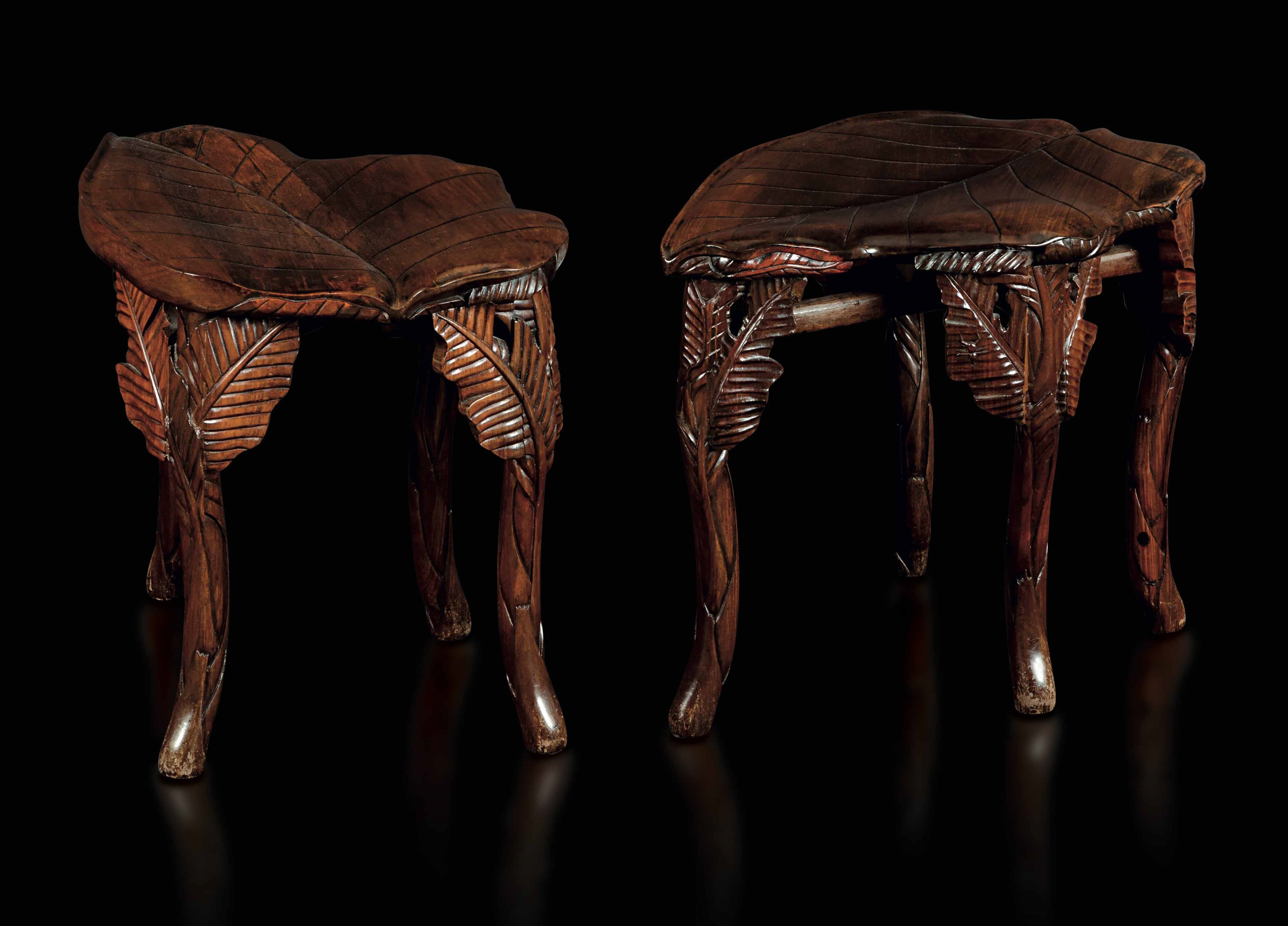 Coppia di sgabelli in legno a foggia di foglia, Cina, Dinastia Qing, XIX secolo
