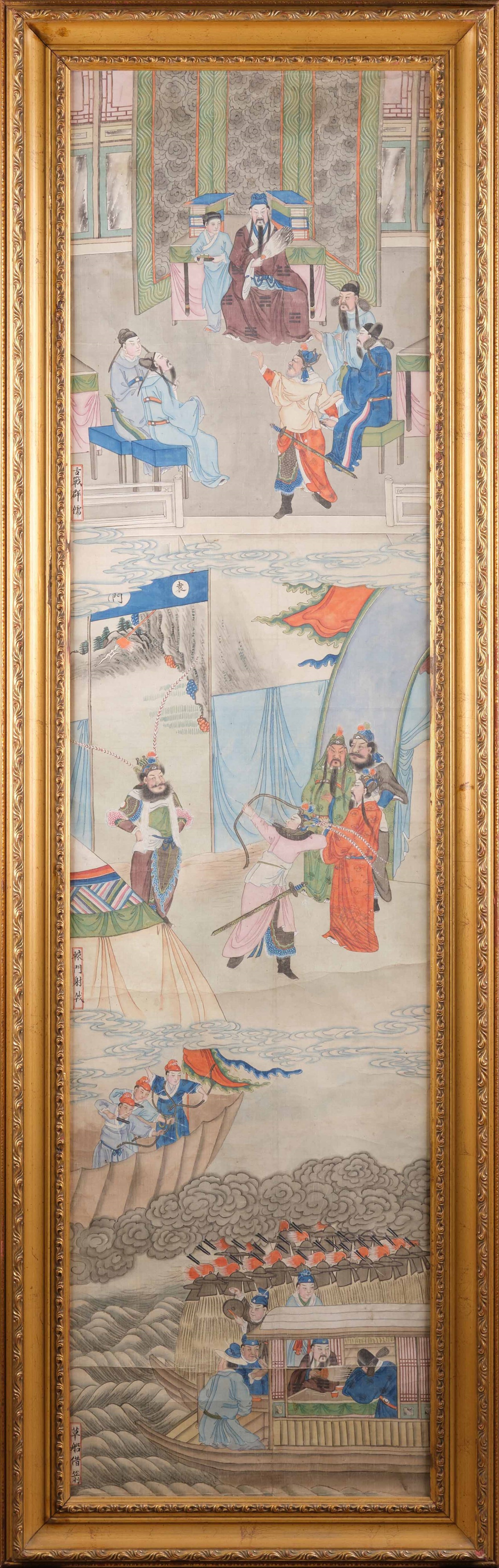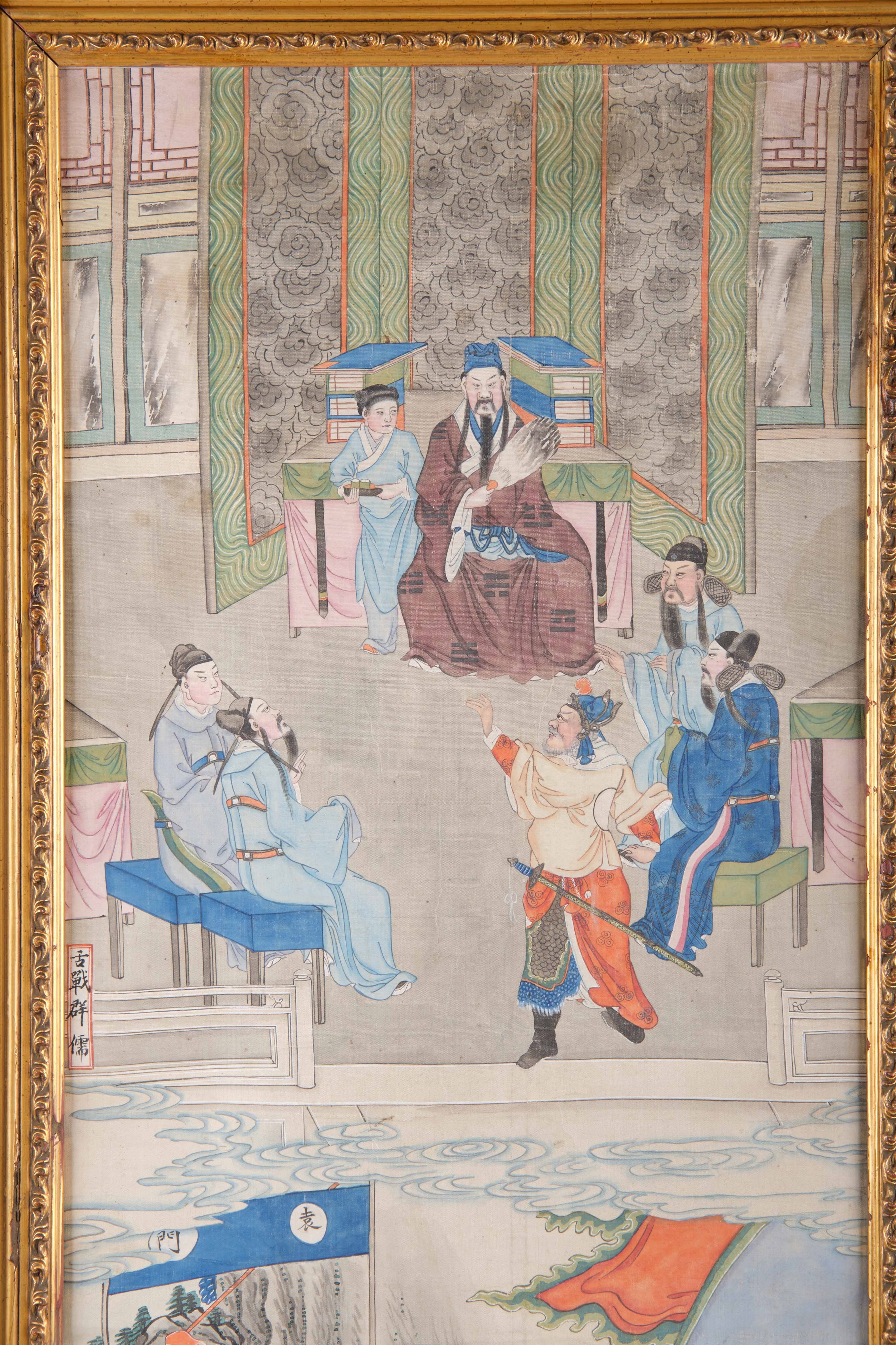 Dipinto su seta raffigurante scena di corte con iscrizione, Cina, Dinastia Qing, [..]