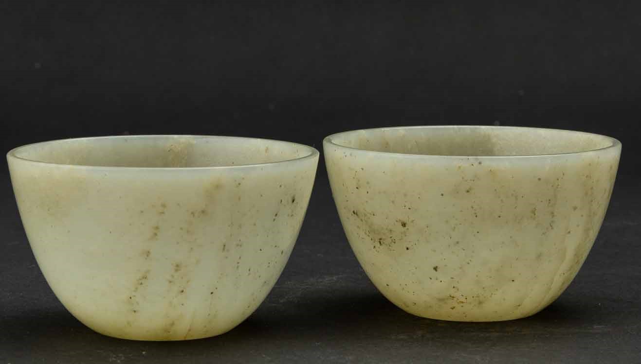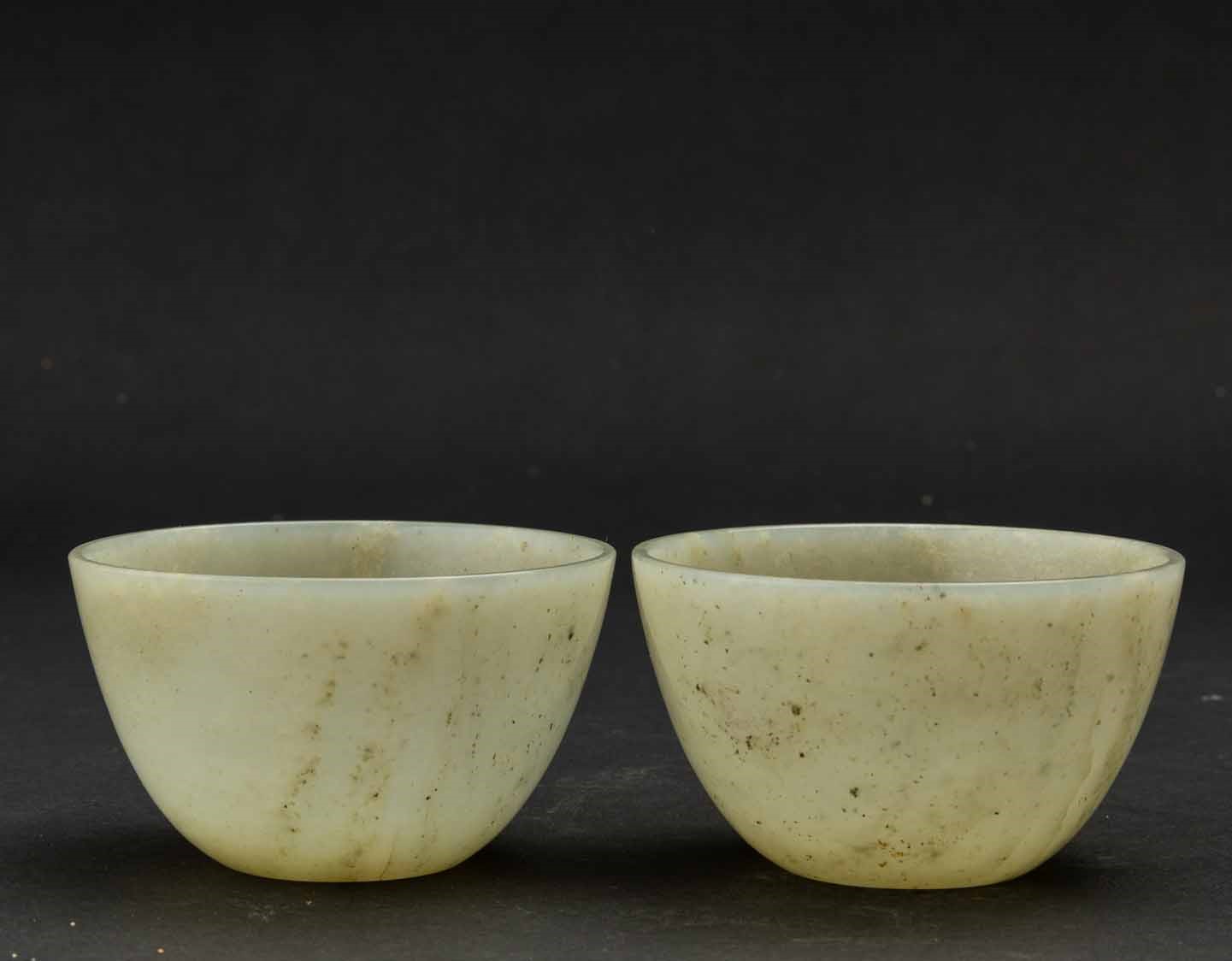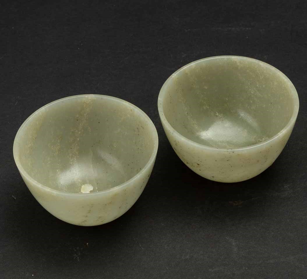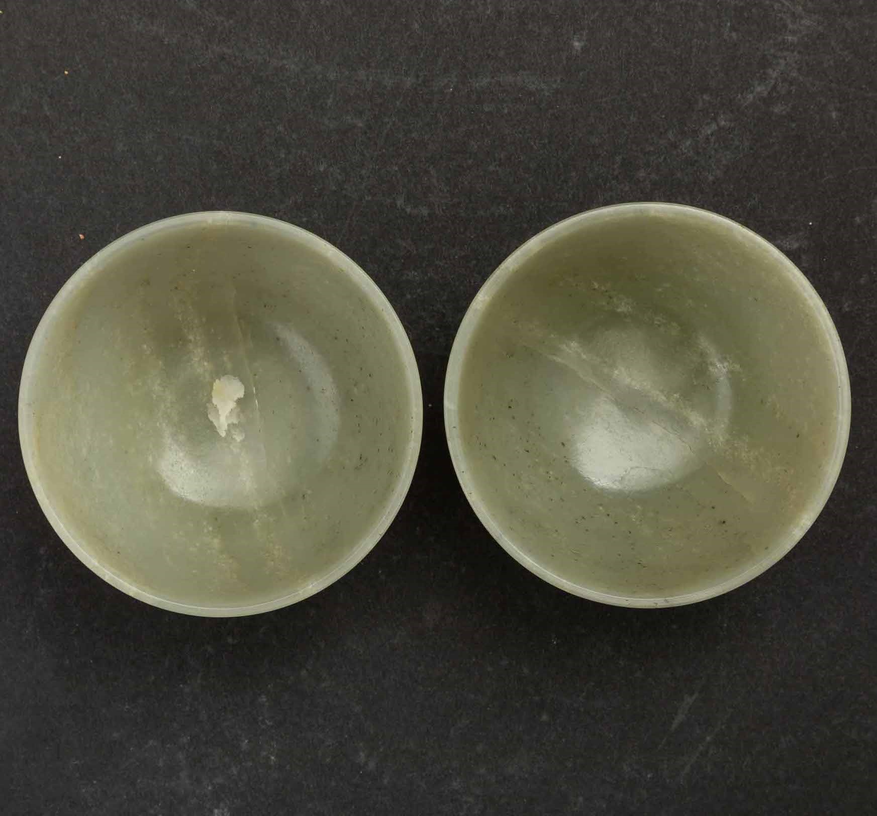 Due piccole coppe scolpite in giada Celadon, Cina, Dinastia Qing, marca e del periodo [..]