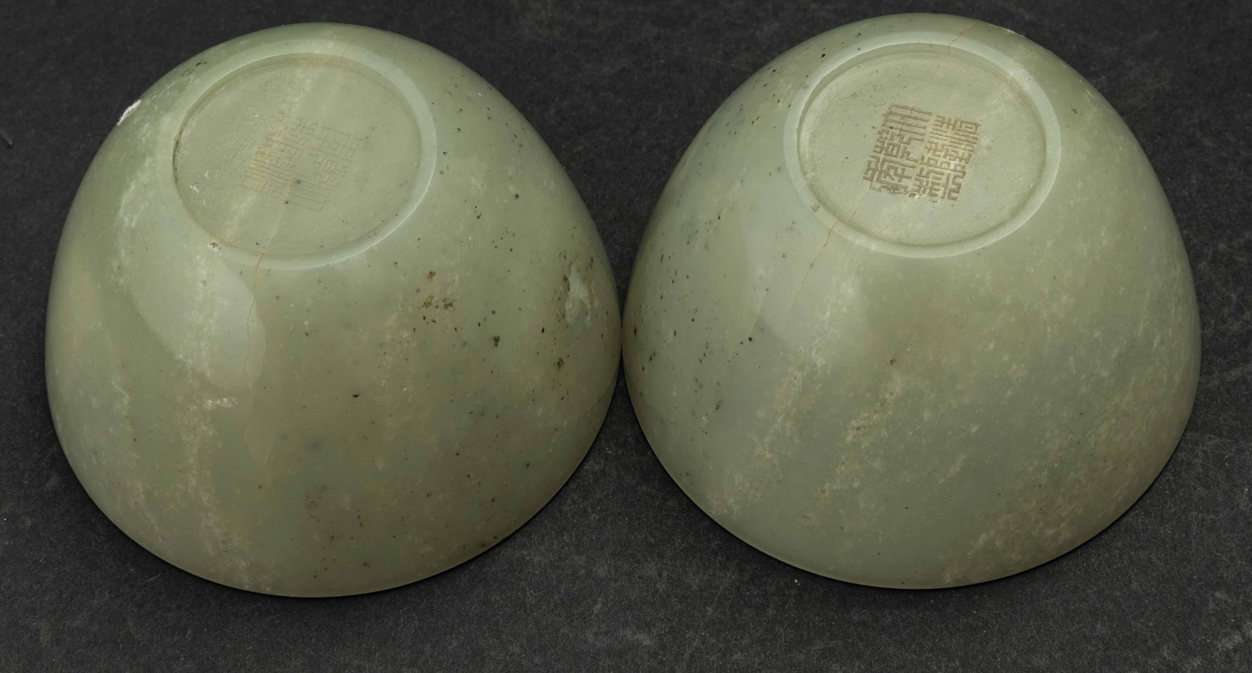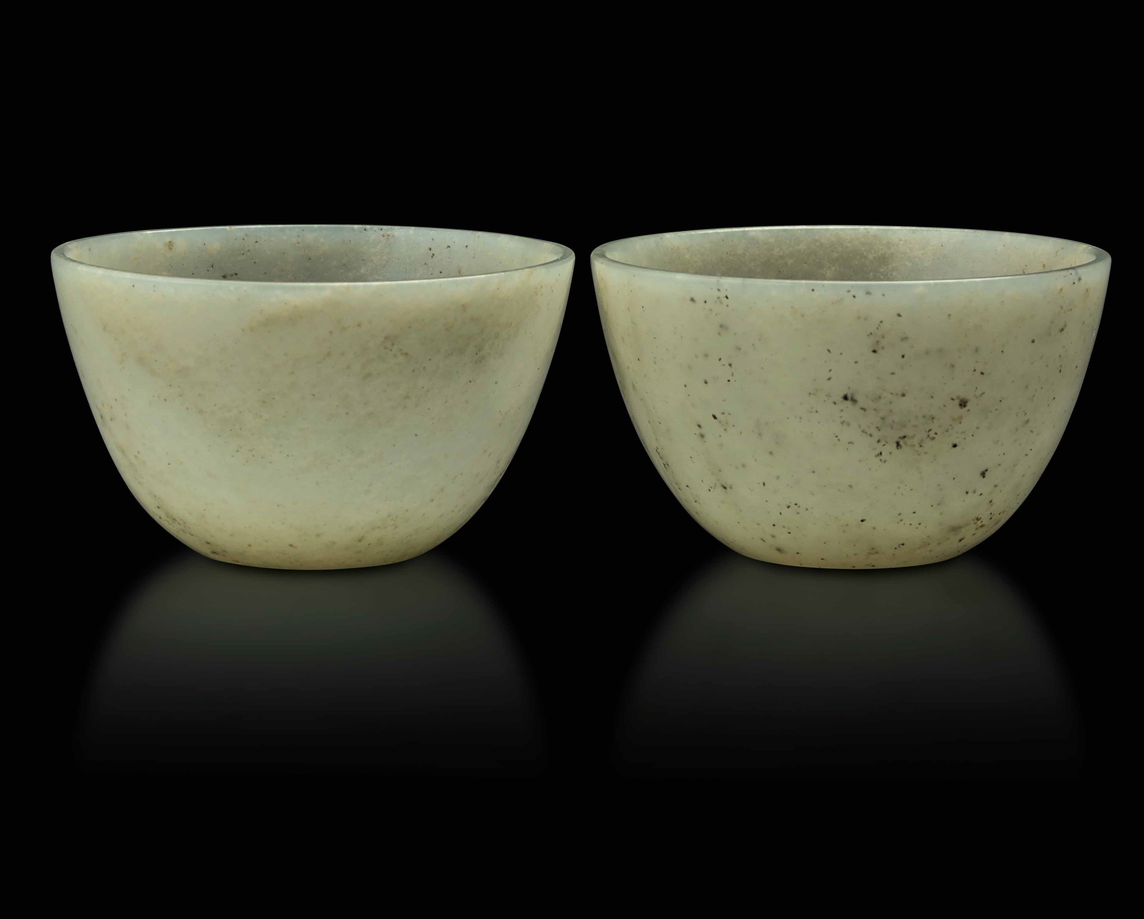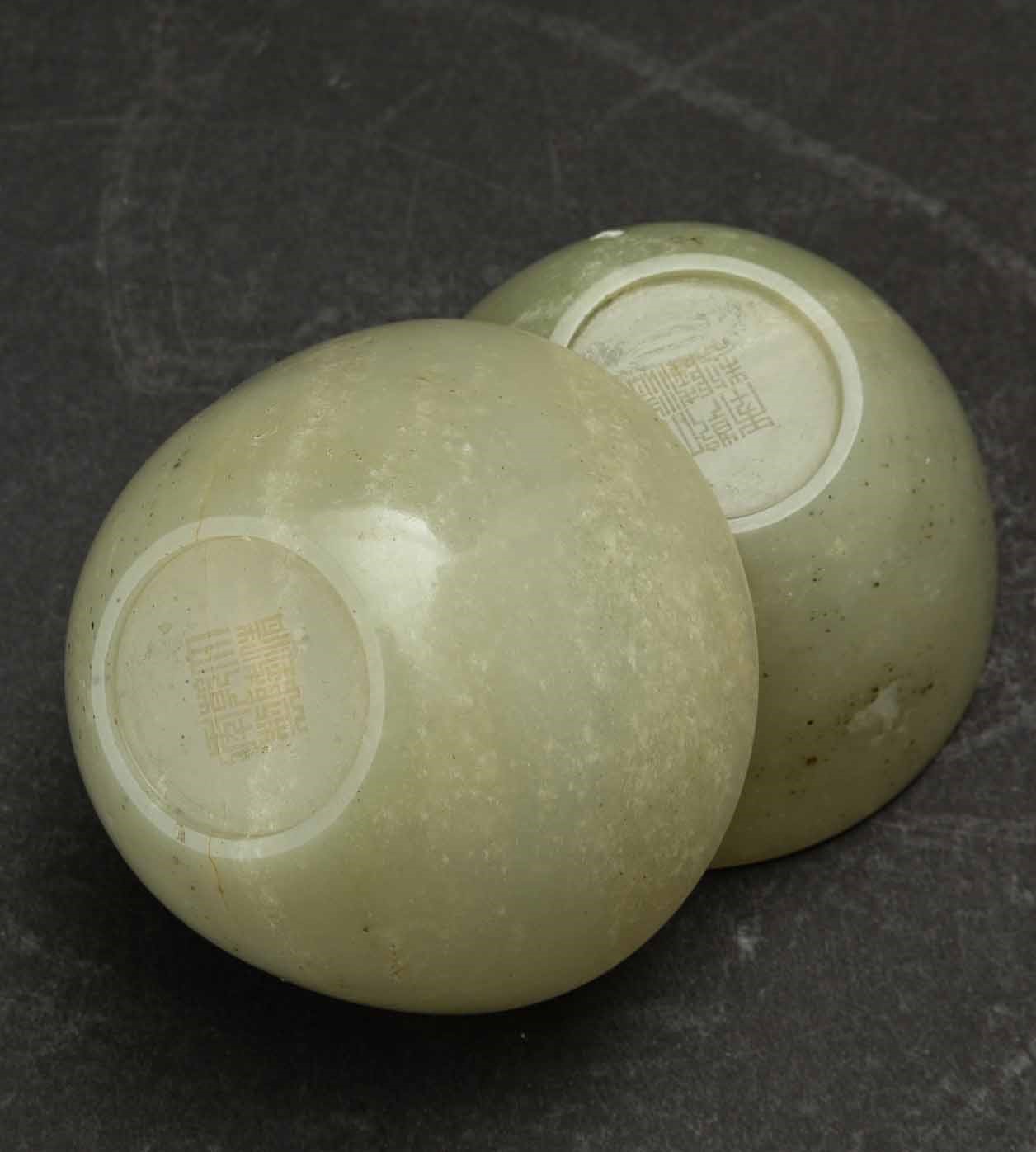 Due piccole coppe scolpite in giada Celadon, Cina, Dinastia Qing, marca e del periodo [..]