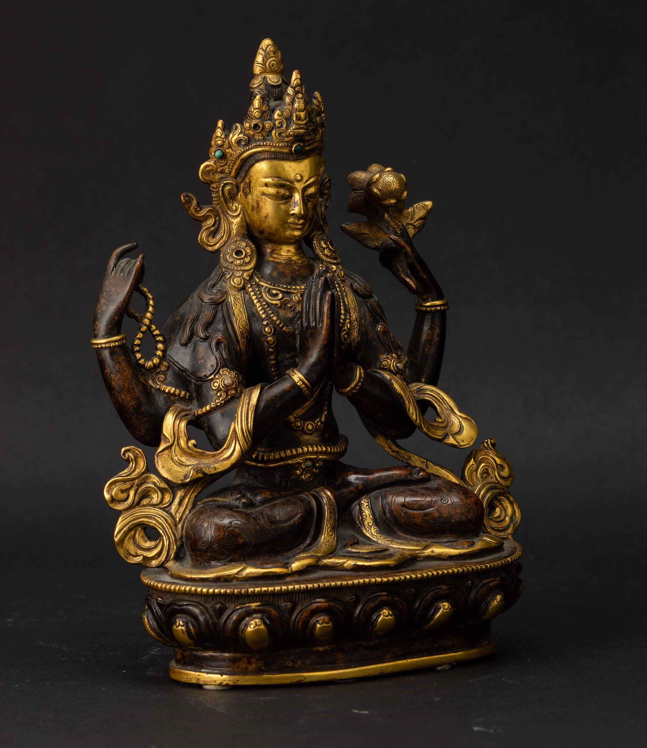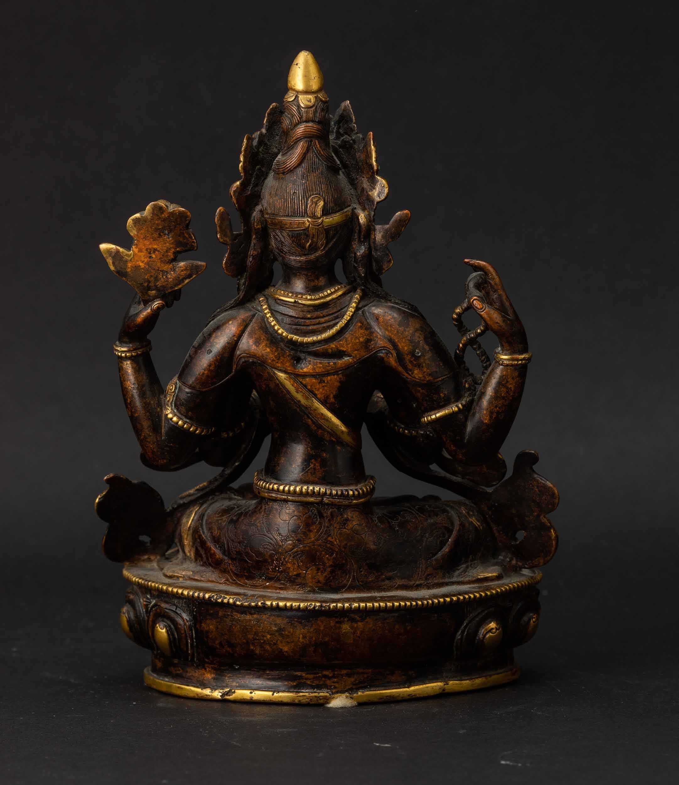 Figura di Buddha seduto su fiore di loto in bronzo con tracce di doratura, Tibet, [..]