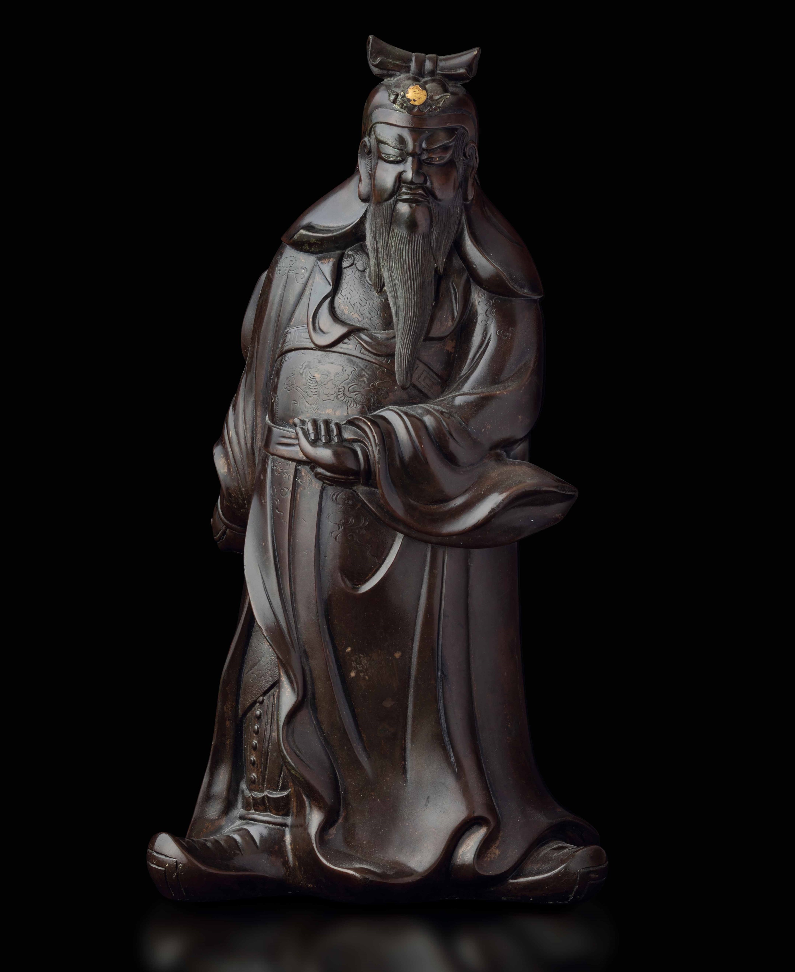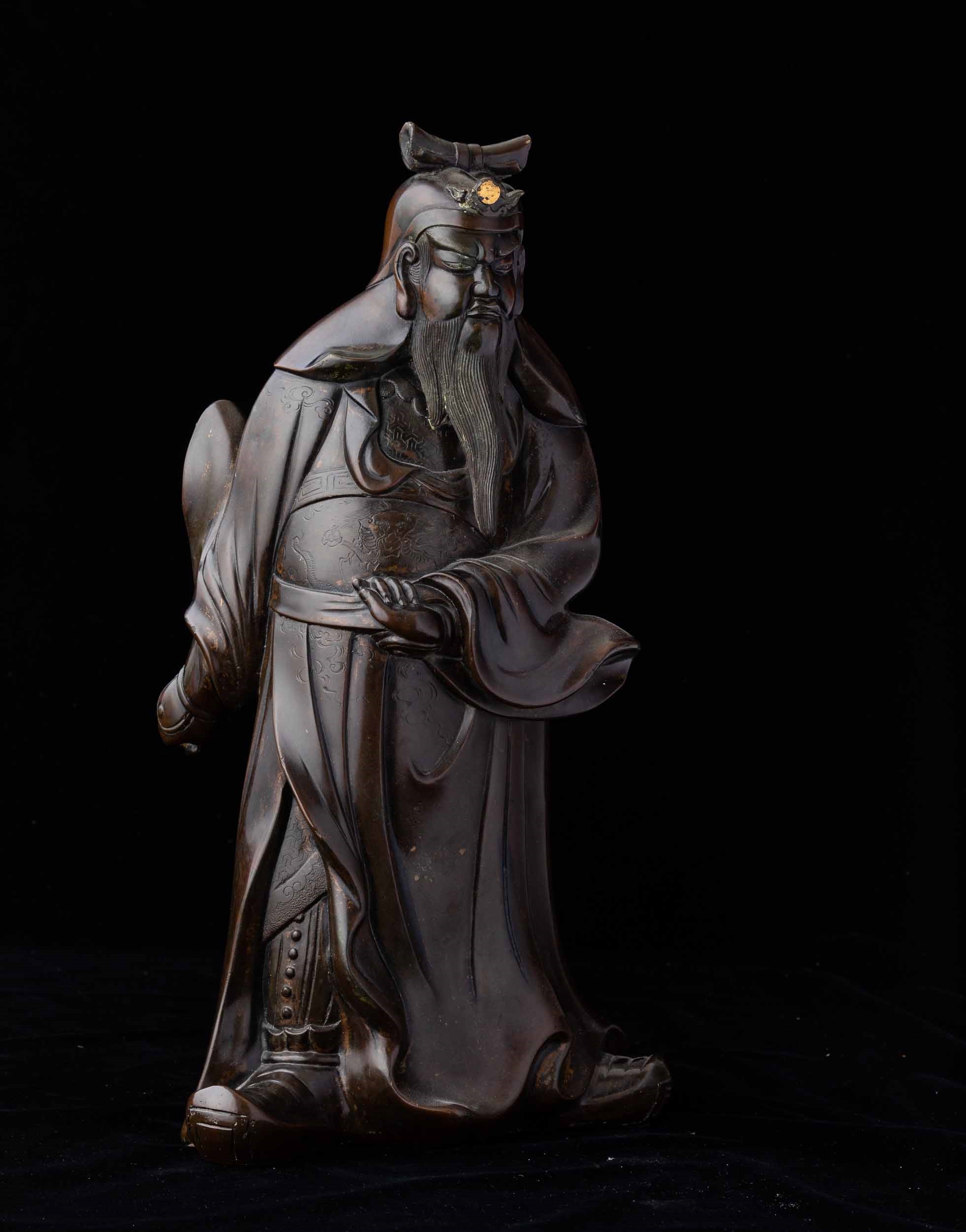 Figura di dignitario stante in bronzo, Cina, Dinastia Qing, XIX secolo